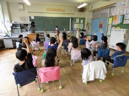 正解がでたら、答えの食べ物の絵を見せます。みんな、当たっても、当たらなくても、楽しそうに参加していました。