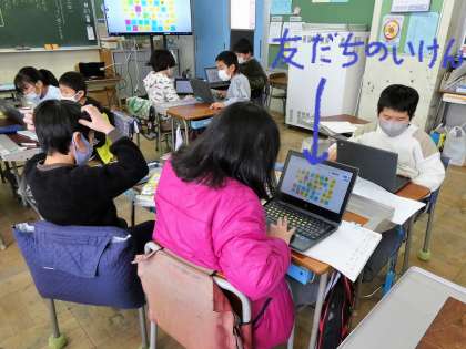 一年間の生活の中で、強く心に残っていることを文章にしていく学習です。この時間は、伝えることを決めるために、できごとを思いだして共有しました。友達の意見を見て、「そうだね。こんなことも経験したね。」と話していました。