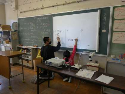200mを10秒で走る「カンガルー」、160mを7秒で走る「ダチョウ」、162mを15秒で走る「ゾウ」の速さを単位量あたり(1mあたり、1秒あたり)を使って比べていました。「1mあたりにかかる時間が〇秒で一番短いから一番速い」や「1秒あたりに進む道のり(距離)が一番長いから一番速い」など、説明できるようになっていました。