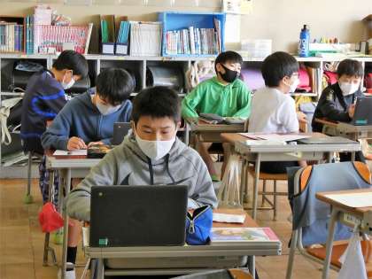 今年度は、間接交流を行っているお子さんから、お便りが届きました。(ホームページでは紹介できませんが、とても素敵なお便りです。)早速、返事の手紙作りに取り組みました。写真を撮り、近況やマイブームなどをタブレットで作っていました。お返事、もう少し待っていてくださいね。