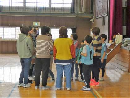 「王様ドッジボール」は、お家の方との合同チームで戦いました。王様を決める話し合いは、真剣な雰囲気です。