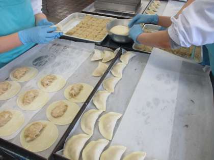 写真2枚目:ツナポテトぎょうざを成型している様子