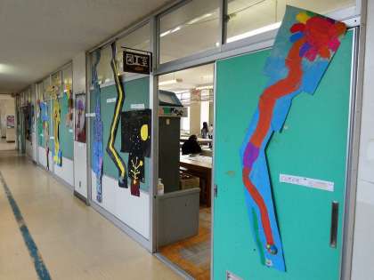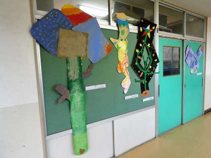 1学期につくった作品です。想像して表現するまぼろしの世界です。