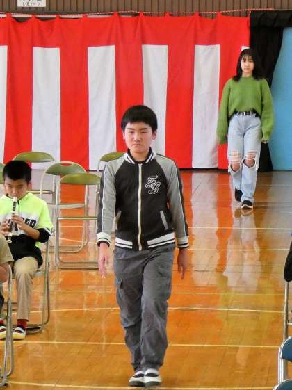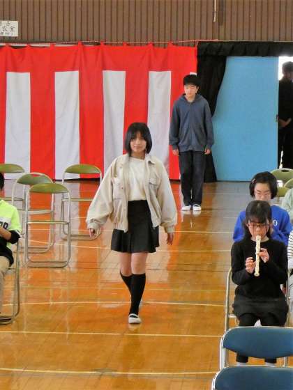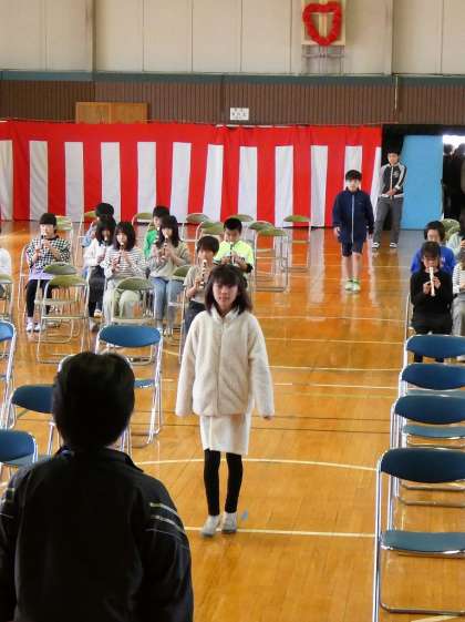 入場曲は、4・5年生が演奏する「威風堂々」です。卒業生は、入口で一礼してから入場します。