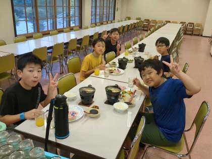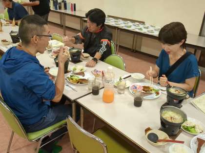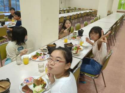 エネルギー充電で、次はキャンプファイヤーです。先生たちもしっかり食べてます。