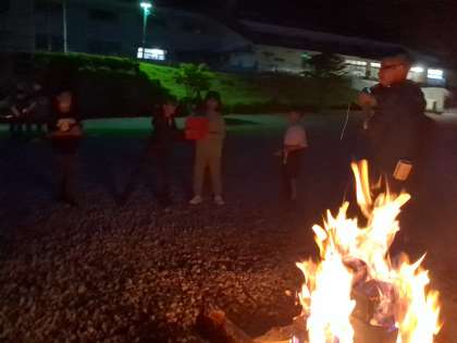 火の神からやぐらへ点火。マイムマイムにゲームで盛り上がりました。