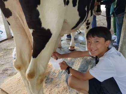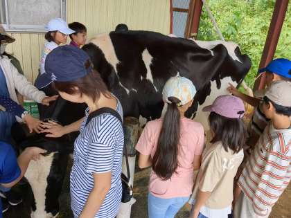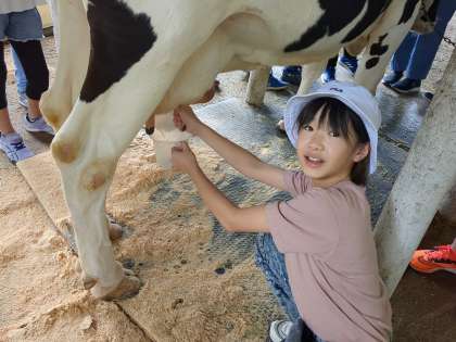 さぁ、いよいよ乳搾り、最初は、みんなおっかなびっくりでした。