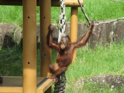 オラウータンの子供も楽しく遊んでいました。さあ、お腹がすいたのでお昼にしましょう。