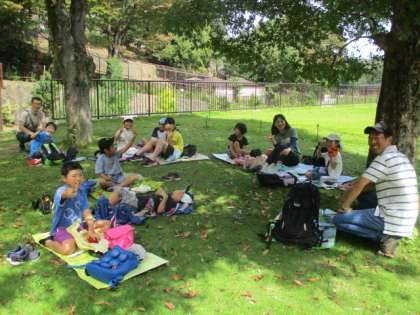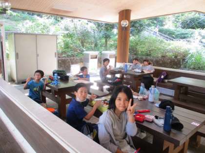 班ごとに思い思いの場所で、「いただきま〜す!」