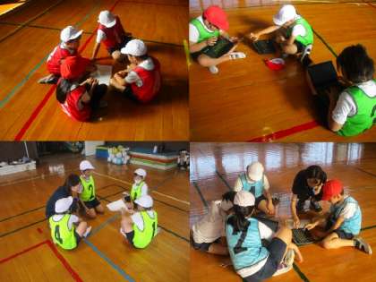 体育の「キャッチバレーボール」体育館で行っていました。プレーの前に各チームで作戦会議、終われば、クロムブックで個人の振り返りをしていました。今日は、チームの声掛けが増えたり、チーム力があがったりしたという感想もありました。とってもうまくなりました。