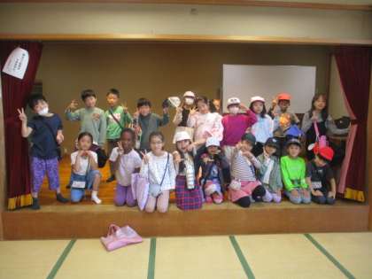 大広間の舞台で記念撮影をしました。案内、ありがとうございました。
