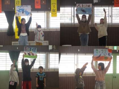 4年生は、各班で取れたサツマイモの中でおもしろい形をした、おもしろイモに名前を付けて、発表しました。