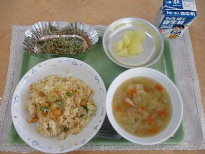 今日は「イングリッシュデイ」だったので、ABCスープにしました。