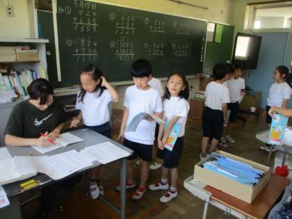 算数の時間、私が行ったときは、ひたすら問題を解いていました。頑張れ!