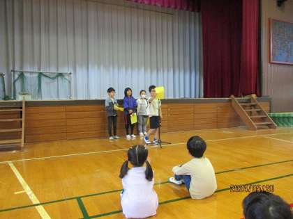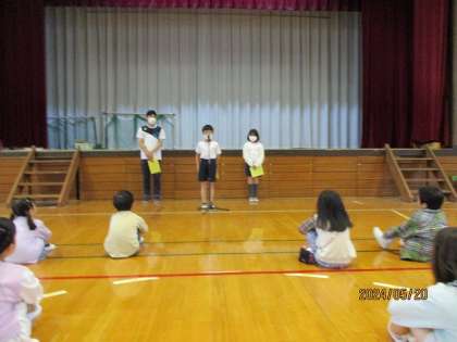 今朝は5月のことば朝会がありました。2年生から6年生による、子供の日や母の日について、新緑の様子や運動会に向けての俳句と川柳が発表されました。