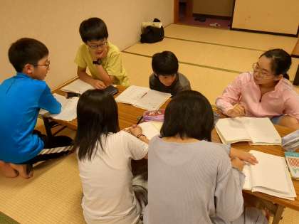 今日の出来事を班長さんが集まり、話し合い反省し、明日につなぎます。