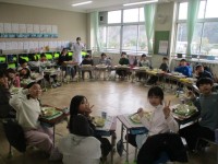 1年生のウェルカム給食、副校長先生と特別支援教室専門員さんを迎えてくれました。楽しくおいしくいただきました。