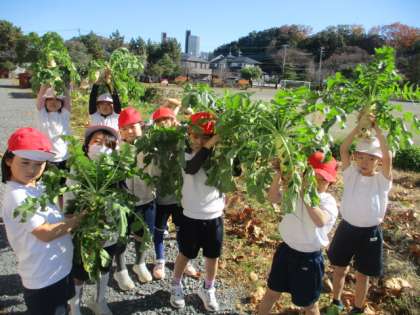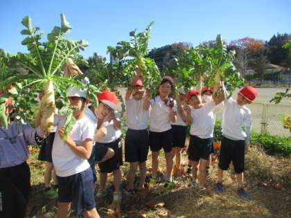昨日に引き続き、今日は、2年生が大根の収穫をしました。明日・明後日は、お休みです。鹿島小産の大根をどうぞ召し上がってください。大根を収穫した子供たちの笑顔がとっても良いですね。