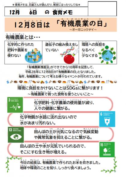 今日は有機農業で作られたお米を食べました。子供たちにとっては少し難しい内容ですが、地球や環境のことに少しでも関心を持ってもらえたらと思っています。