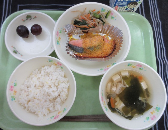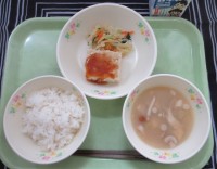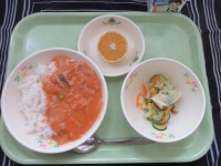 今日は、八王子市市制施行記念日です。八王子市は大正6年に誕生しました。今年で108周年を迎えます。童謡「夕焼小焼 」は上恩方町出身 の中村雨紅先生が作詞しました。八王子駅から恩方の家に帰りながら、この詩を作ったと言われています。夕方に流れる「夕焼けチャイム」でおなじみですね。給食では、童謡の夕焼小焼をイメージして「夕焼小焼やき」を作りました。マヨネーズににんじんを入れた、夕焼色のソースを魚にかけて焼いています。八王子市初宿市長の動画を見ながら、食べました。