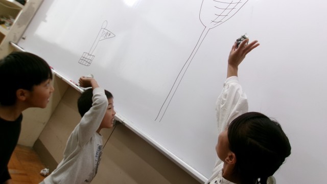 写真は本日の日常生活の1コマです。この活動は12月の学習発表会に向けた学習になります。普段、子供たちは、発表するときに緊張したり、カメラの前で恥ずかしがったり見られます。この課題は、学習発表会に向け、改善したいところです。そこで、カメラの撮影に慣れ、緊張しないで楽しめるように指導しました。写真撮影は、みんなでアイデアを練って、黒板に絵を描き、面白い写真を撮りました。
