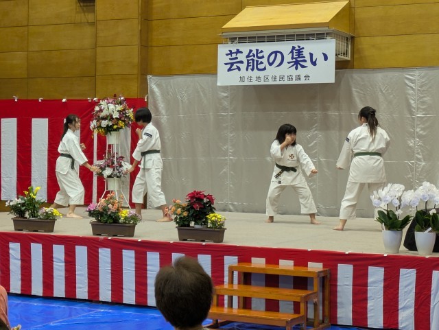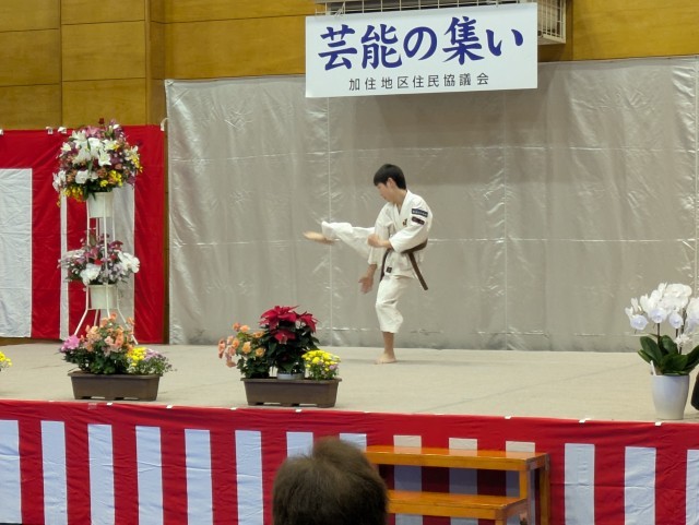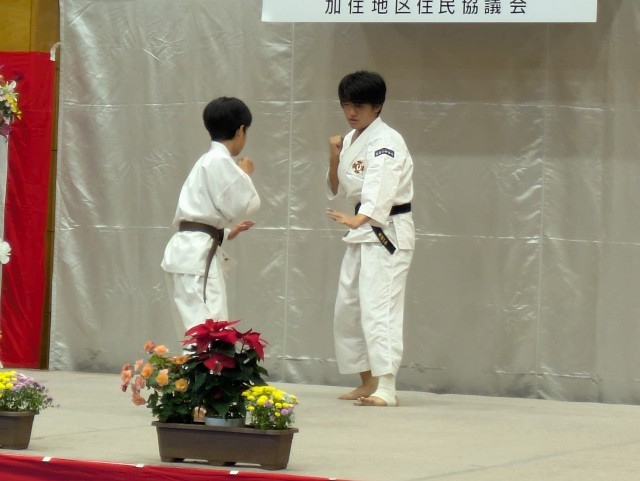 加住センター祭りが開催され、少林寺拳法部の児童・生徒が演武を披露しました。