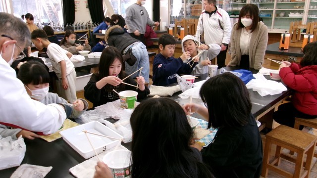 小学部3年生 繭の糸取り