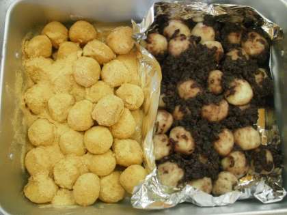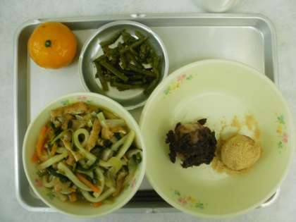 今日は給食室で「月見だんご」を作りました。あんこときな粉の二種類です。
