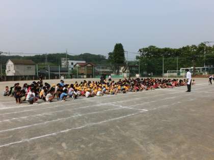 体育大会も大成功に終わり、1学期後半のスタートとなる全校朝会です。校長先生からは、時間を守ったり、決まりを守ったり、みんなで気持ちの良い生活ができるようにしていきましょう。とのお話がありました。