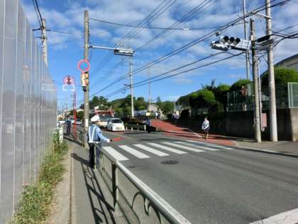 9/21〜9/30まで、秋の交通安全運動週間です。本校では学校前の2つの横断歩道で、いつも見守ってくださっている安全ボランティアさん、駐在さんに加えて、地域の安全協会の皆さんが子供たちの安全な登校を見守ってくださっています。