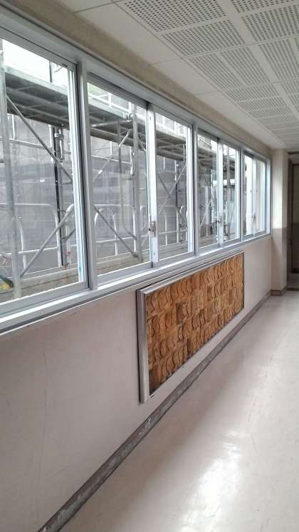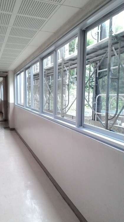 渡り廊下の建具も交換され、見違えるように明るくなりました。