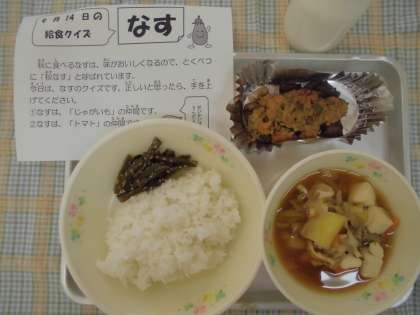 秋には、季節のおいしいなすを、給食で
