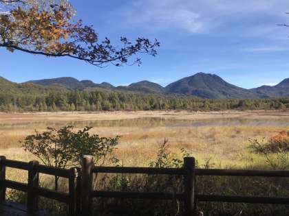 戦場ヶ原からの眺めです。とてもよく晴れていて、最高のハイキングです。