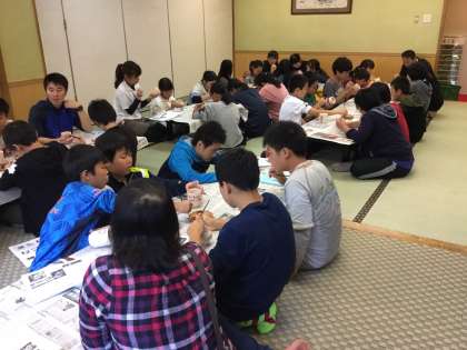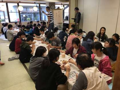 ハイキングを終えて、絵付け体験です。完成が待ち遠しいです。