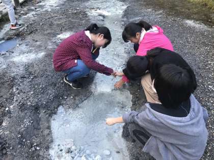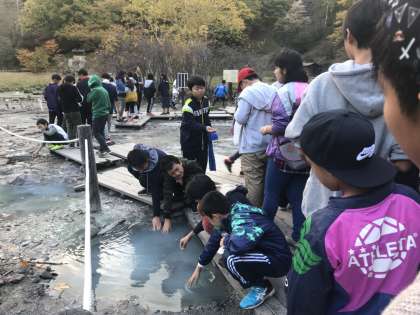 源泉を見学です。十円玉がどんな風になったでしょうか?