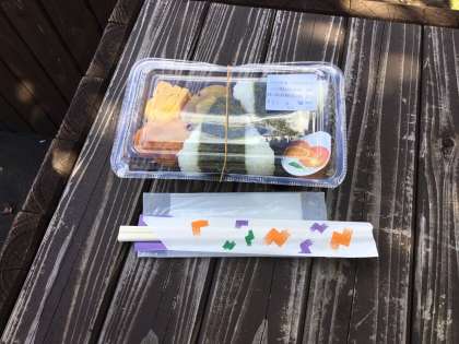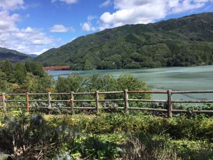 富弘美術館の見学を前に、昼食です。草木ダムの周辺はまだ緑が鮮やかです。