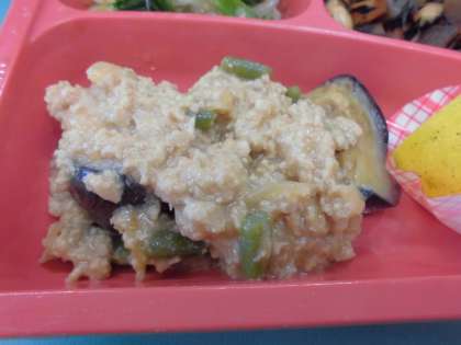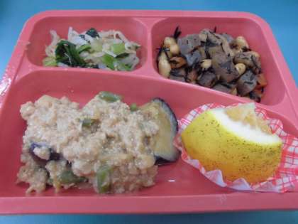 今日の献立 ごはん・揚げナスとインゲンの肉味噌かけ・五目煮豆・青菜のナムル くだもの・牛乳 お箸名人になろう!ウィーク 4日目は つまむ です。 正しい箸の持ち方で、正しく使って 豆をつまみます。