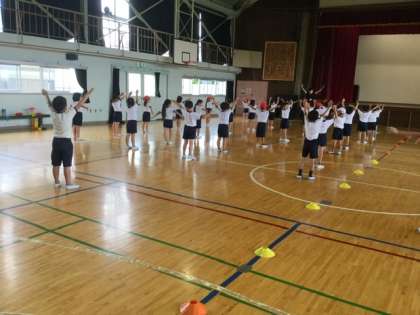 練習を始める前には、ラジオ体操もしっかりとできていました。