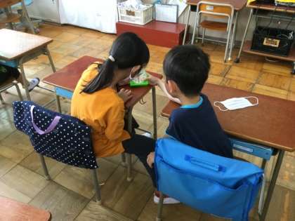 相手に見えないように問題を作る姿が微笑ましかったです。