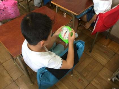 ペア学習で、「何時半」を出題し合う活動をしました。