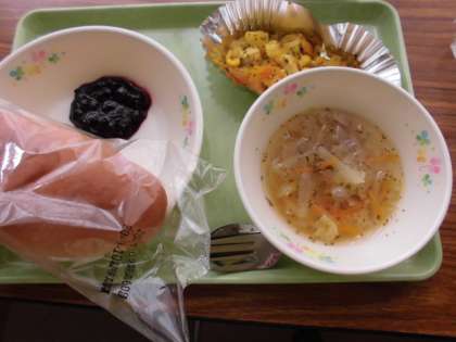 ミルクパン・カラフル野菜のマヨチーズ焼き・野菜スープ