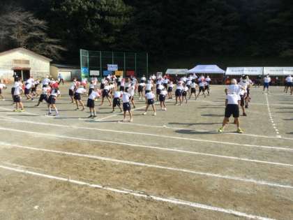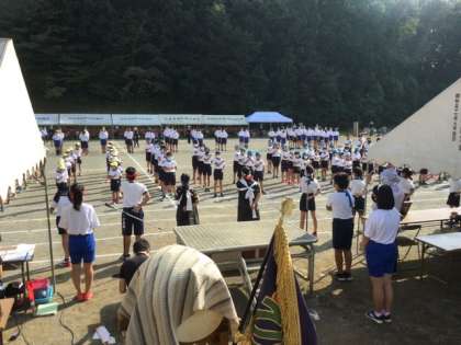 開会式、応援団とラジオ体操です。