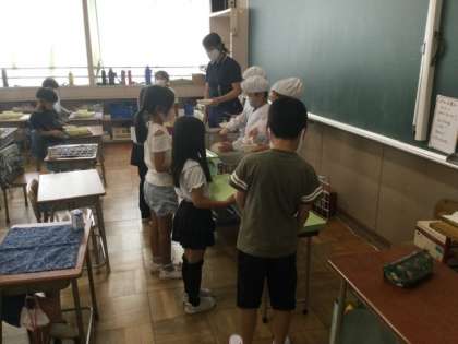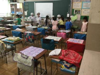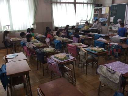 10/6 低学年の給食配膳