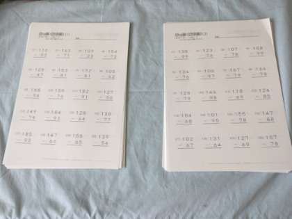 繰り下がりのある3桁の数のひき算を、筆算で計算していました。