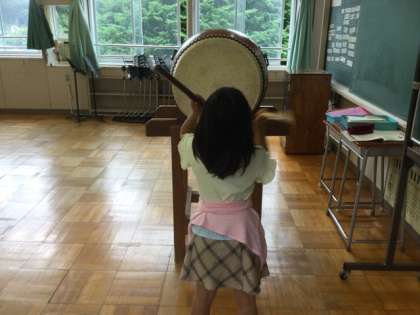 太鼓を叩く順番待ちも、エア太鼓で練習してました。