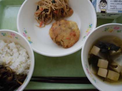 五穀ご飯・がんもどき・八王子きくらげの佃煮