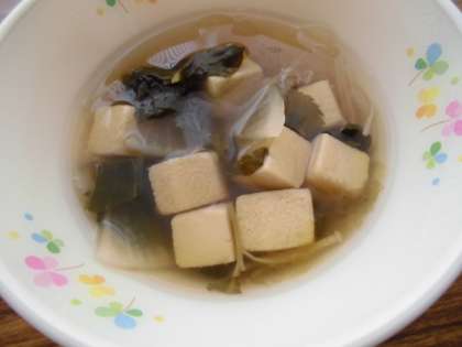 小松菜と切り干し大根のお浸し・精進だしの翠藹汁・牛乳