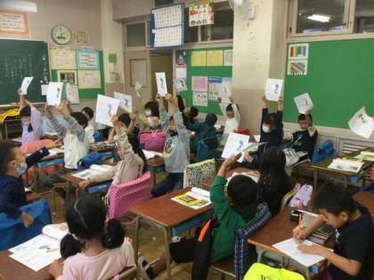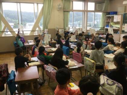 しっかりと自分の意見を、はっぱの色で表せていました。