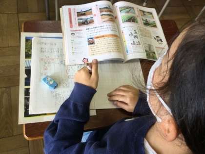 今日は、農家も人々の工夫を教科書などから見つけていました。