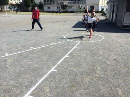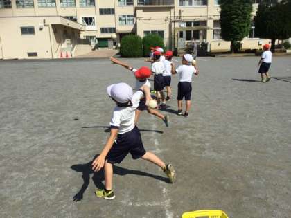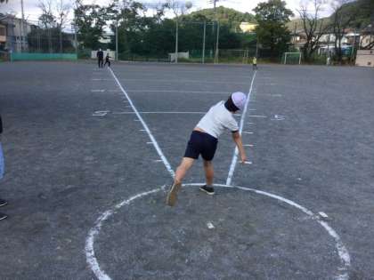 3校時、ソフトボール投げの練習です。